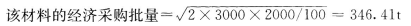 题目: 某施工企业所需的一种材料,年度采购总量为2000吨。材料单位为1000元/吨。一次订货成本为3000元,材料的年平均储存成本为100元/吨,则该材料的经济采购批量为( )吨。
